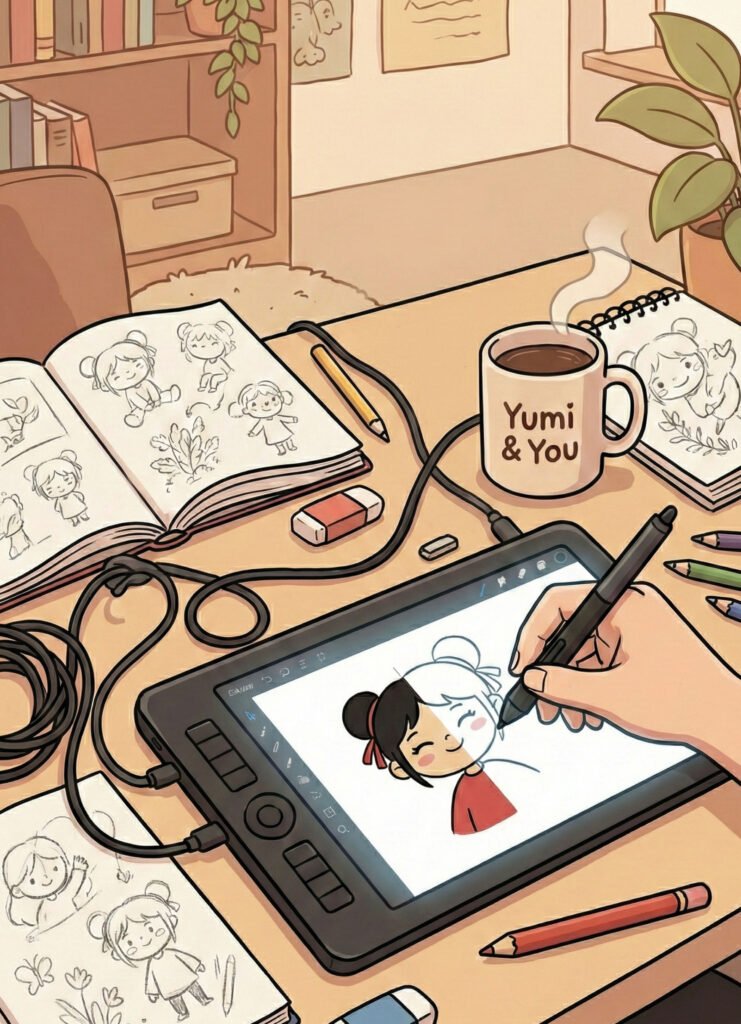 Hi! Ich bin Yumi. Aber ich bin nicht allein. Yumi & You ist ein echtes Herzensprojekt aus dem Hause Christoph Alexander Verlag. Unsere Mission? Wir wollen die Welt ein bisschen gemütlicher machen – Strich für Strich.